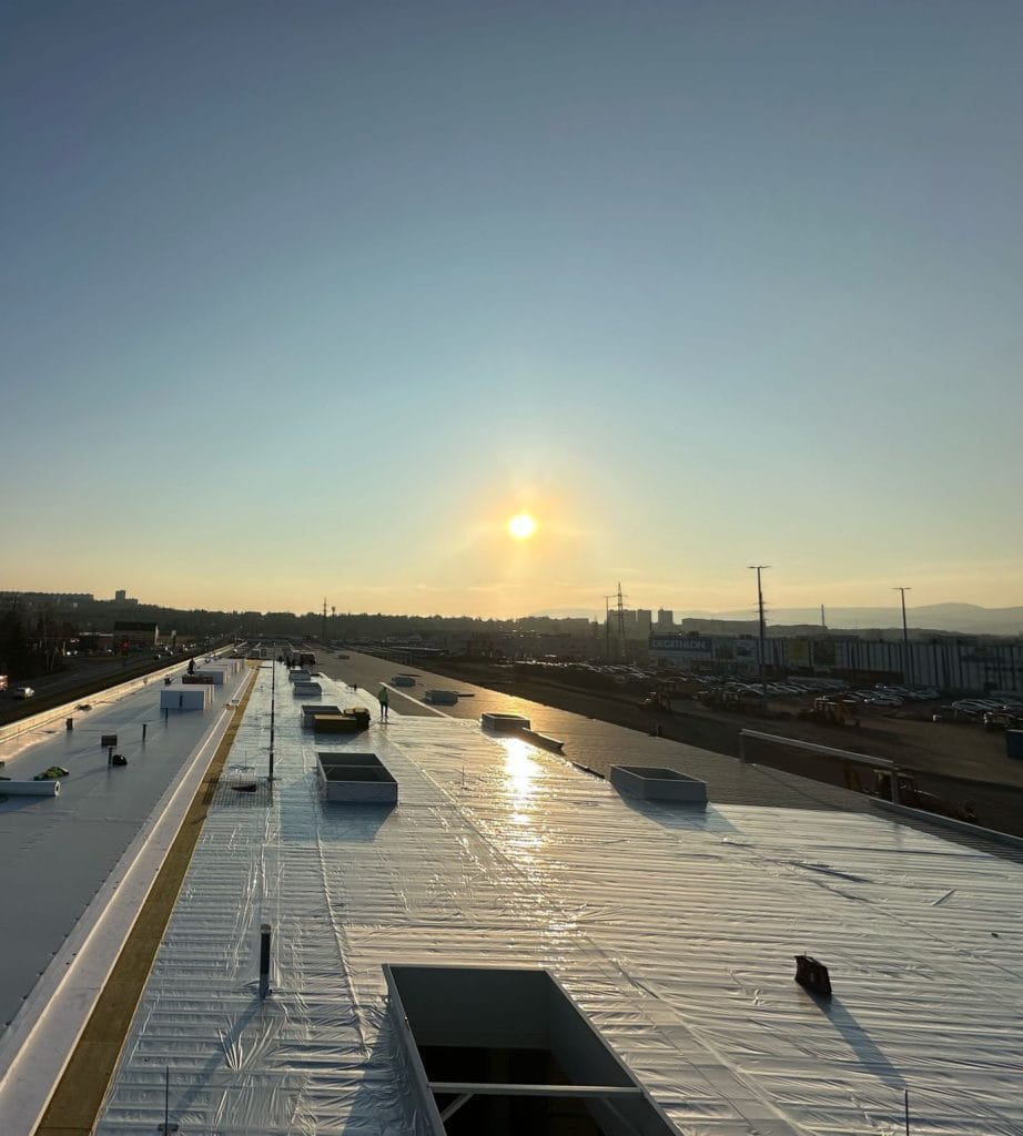 Hlavní použité materiály: VAP IND, HYPERFLEX 1,5 FM Dodané množství: 11000m2 Kompletní hydroizolace střešního pláště